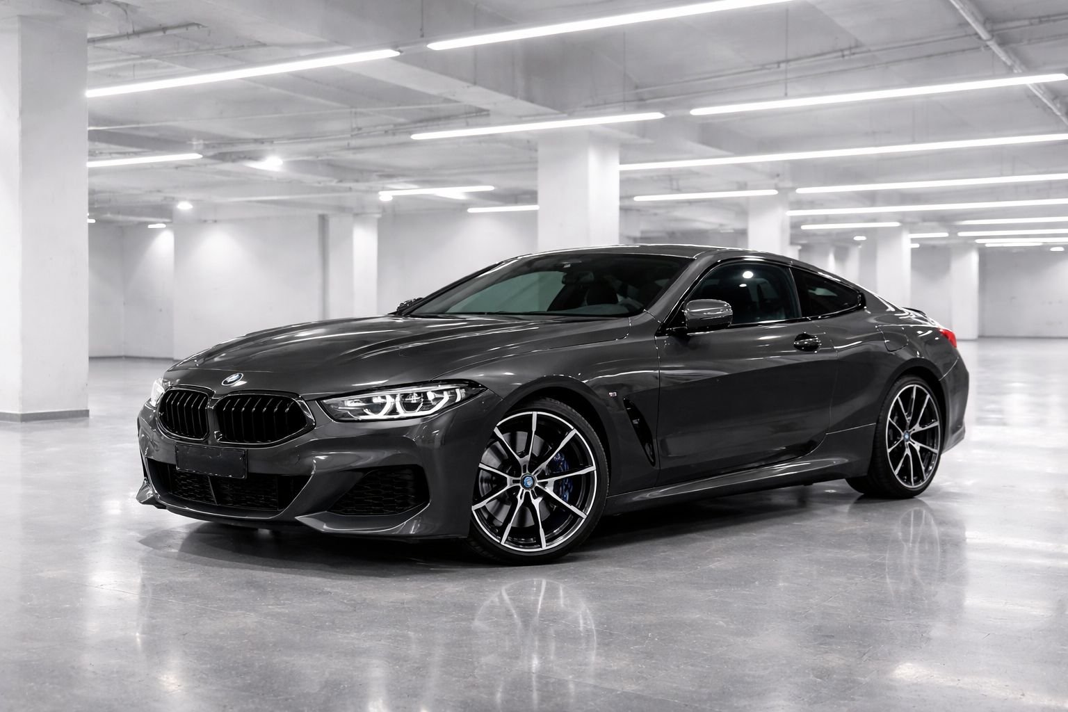 גראן קופה שילוב צבעים אפור כהה מטאלי וריפודי עור בצבע שחור, רכב מושלם.