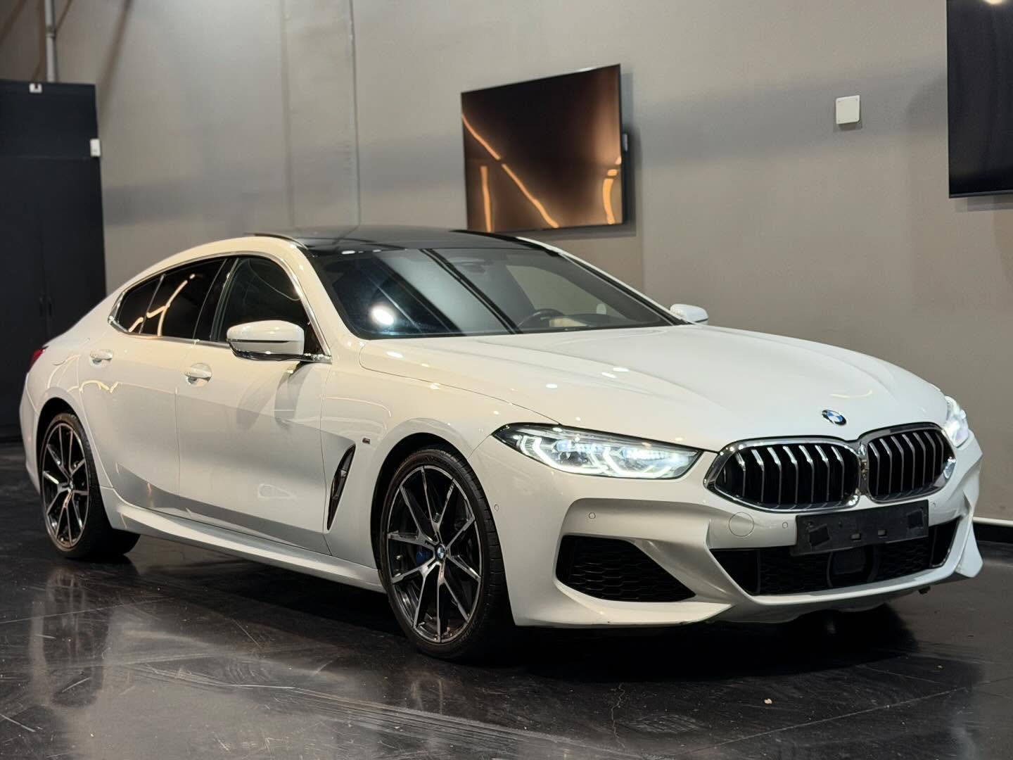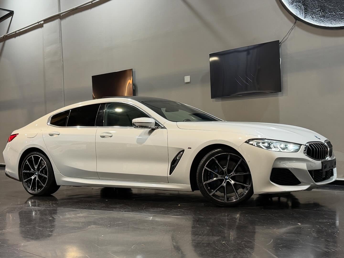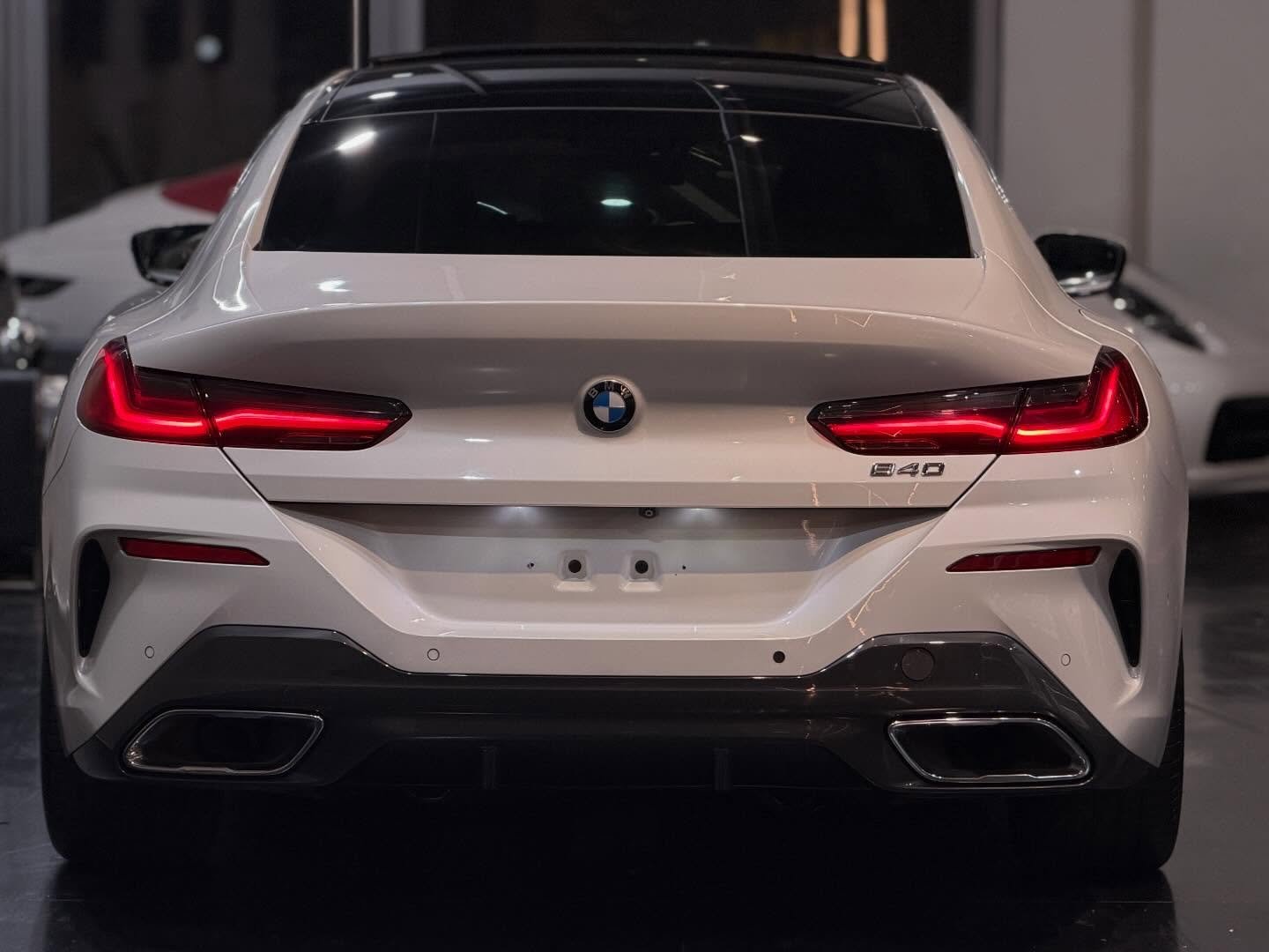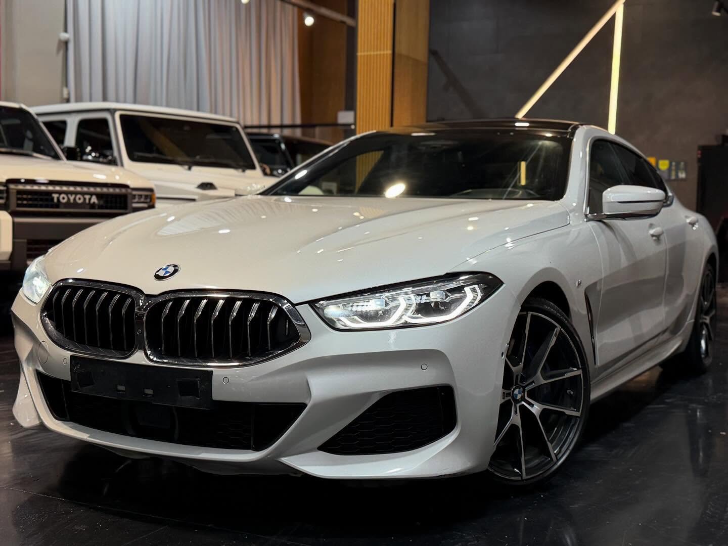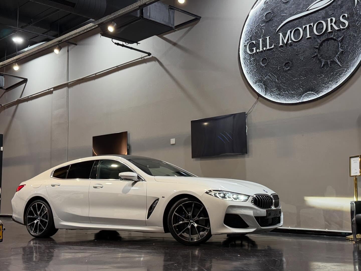 הספורט קופה מנהלים היוקרתי של ב.מ.וו סדרה 8 נכנס למלאי, לבן פנינה בפנים עור שחור, M מלא, רכב שמור כחדש, בהזדמנות.